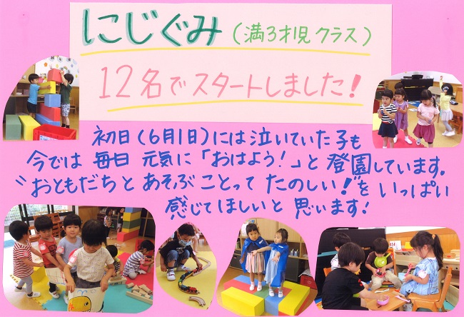 にじぐみ(満3才児クラス)12名でスタートしました!