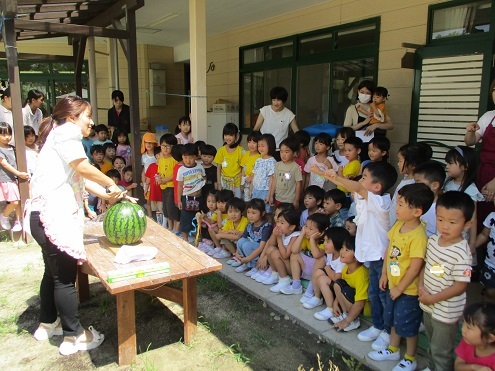 「スイカおおきい!」「あまくておいし~い!」と、子どもたちも大喜びでした♪