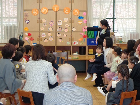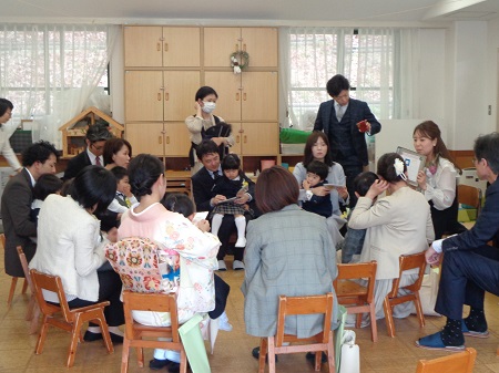 朝からの大雨が少し落ち着いてきたころ、幼稚園では入園式が始まりました。