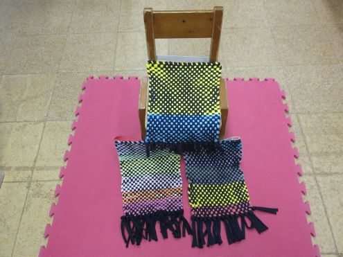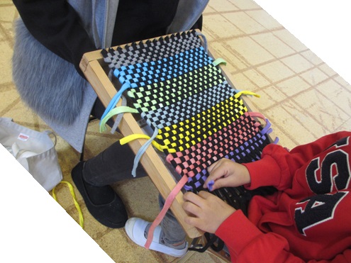 縦糸に対して横糸を上下に、順番に、間違えないように通していく根気が必要な活動です。