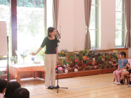 幼稚園では日程は少し違いますが、美しい花をくださった神さまに感謝し、子どもたち一人ひとりも花のように神さまと人々に喜ばれるものになるように祈りつつ、『花の日礼拝』を捧げています。