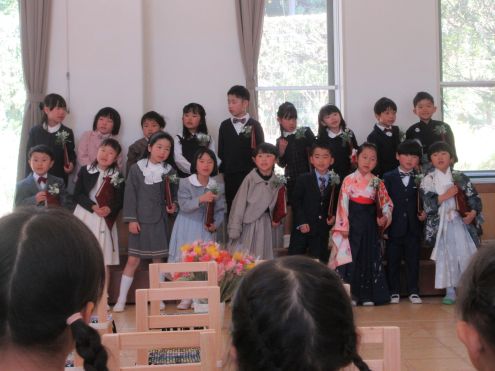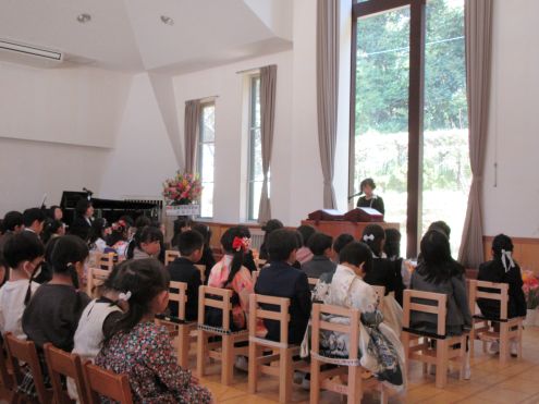 一人ひとり名前を呼ばれ堂々と卒園証書を受け取る姿、心を合わせ讃美歌や歌をうたう姿に3年間,4年間の成長を感じる式でした。