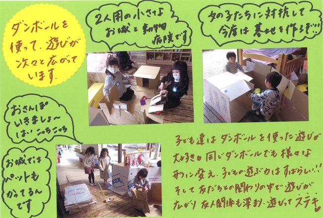 こどもニュース番外編 ダンボール遊び はとぐみデッキにて