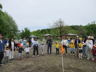 公園に到着後は、全園児で今年のテーマソングを歌ったり、クラス対抗のゲームをしたり、新年度の新しい出会いを喜び、親子で親睦をはかりました。