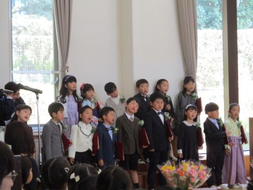 一人ひとり名前を呼ばれ堂々と卒園証書を受け取る姿、心を合わせ讃美歌や歌をうたう姿に3年間,4年間の成長を感じる式でした。